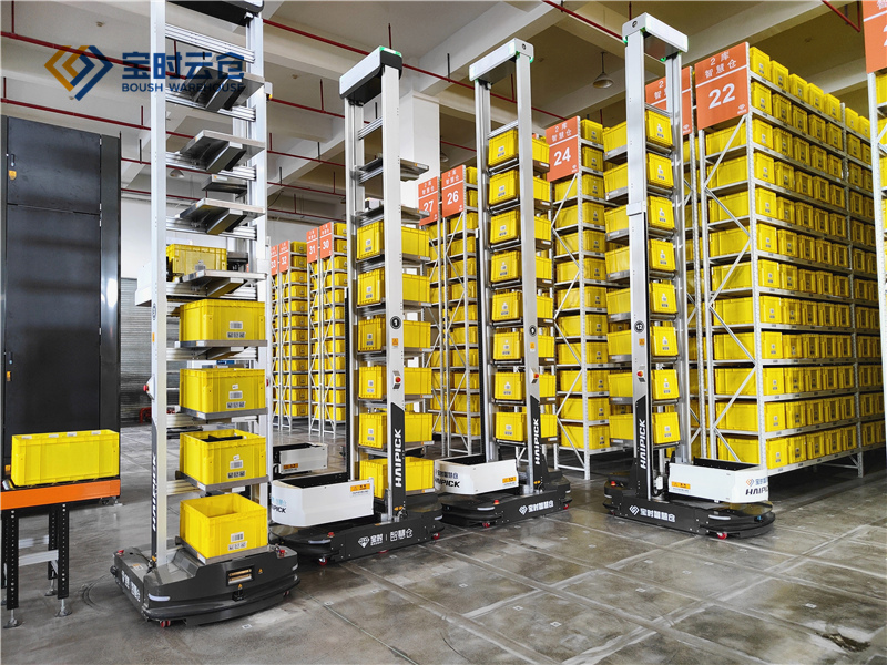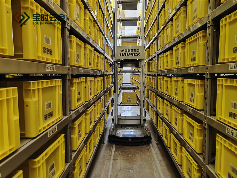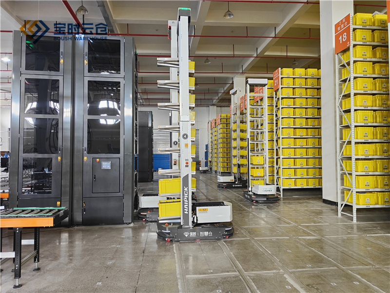 然而,在宝时智慧云仓上演的却是另一番景象:在偌大的仓库里,只有AGV机器人,根据WMS系统的调度,轻轻松松到指定货位拣取商品。